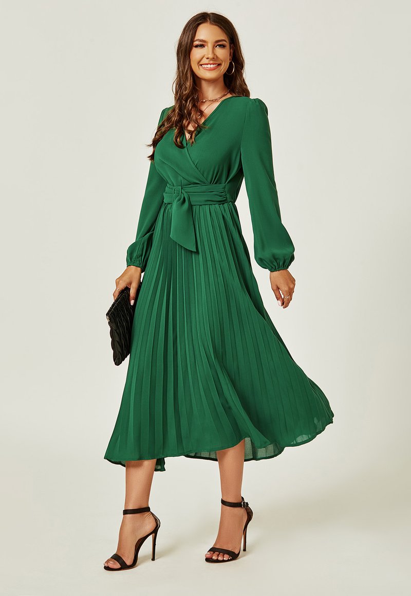 Fs Collection Pleated Midi With Belt Day Dress Green Zalando De